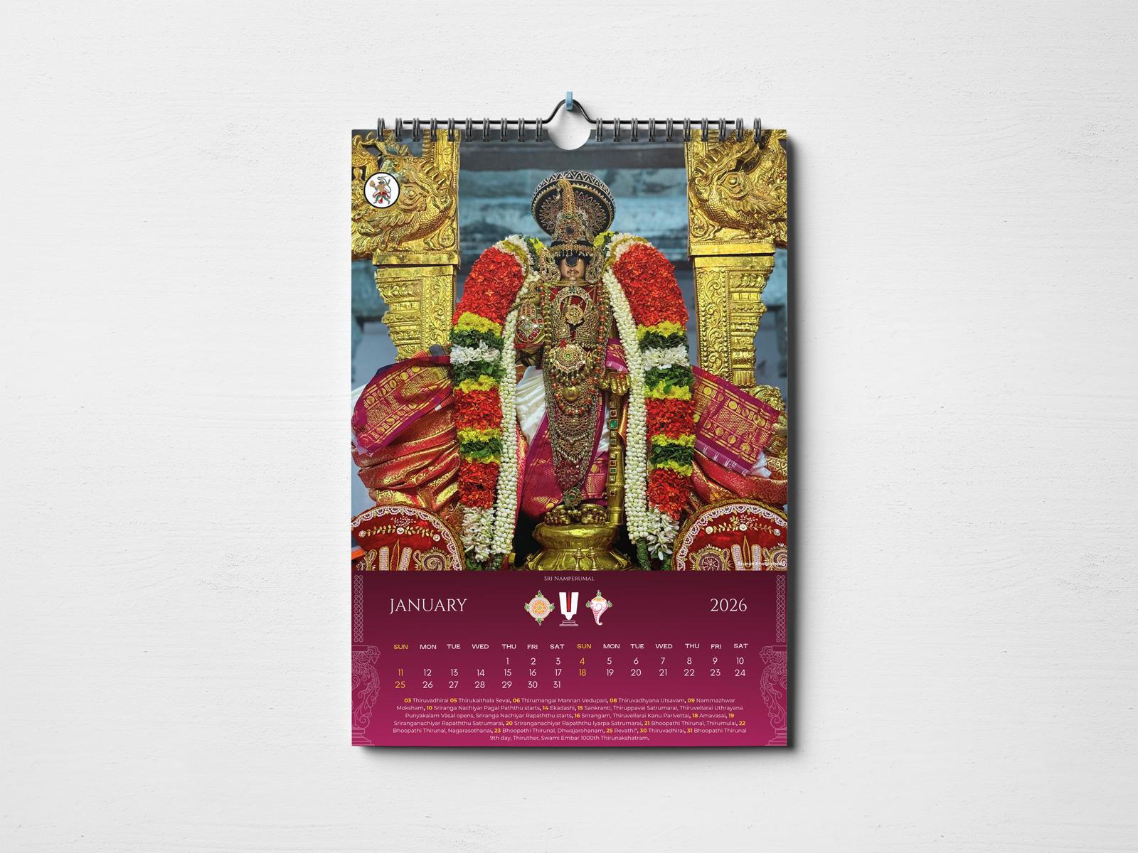 This calendar is inspired by the sacred idols and divine heritage of Sri Rangam, carefully designed to reflect reverence, tradition, and spiritual integrity.